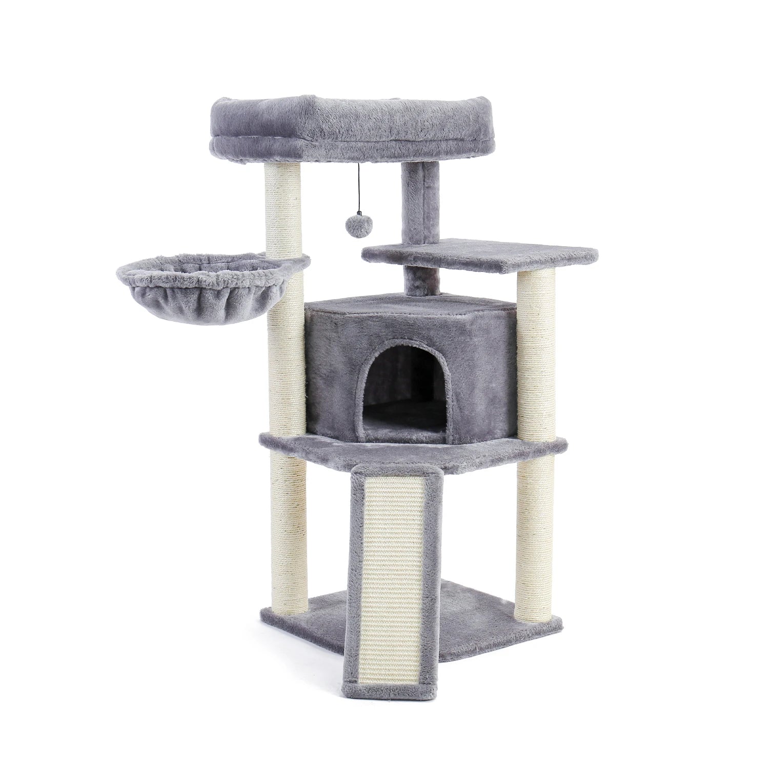 - Scratch Board Included: Equipped with a built-in scratch board, this cat tree helps protect your furniture by satisfying your cat’s scratching needs and promoting healthy claw maintenance.