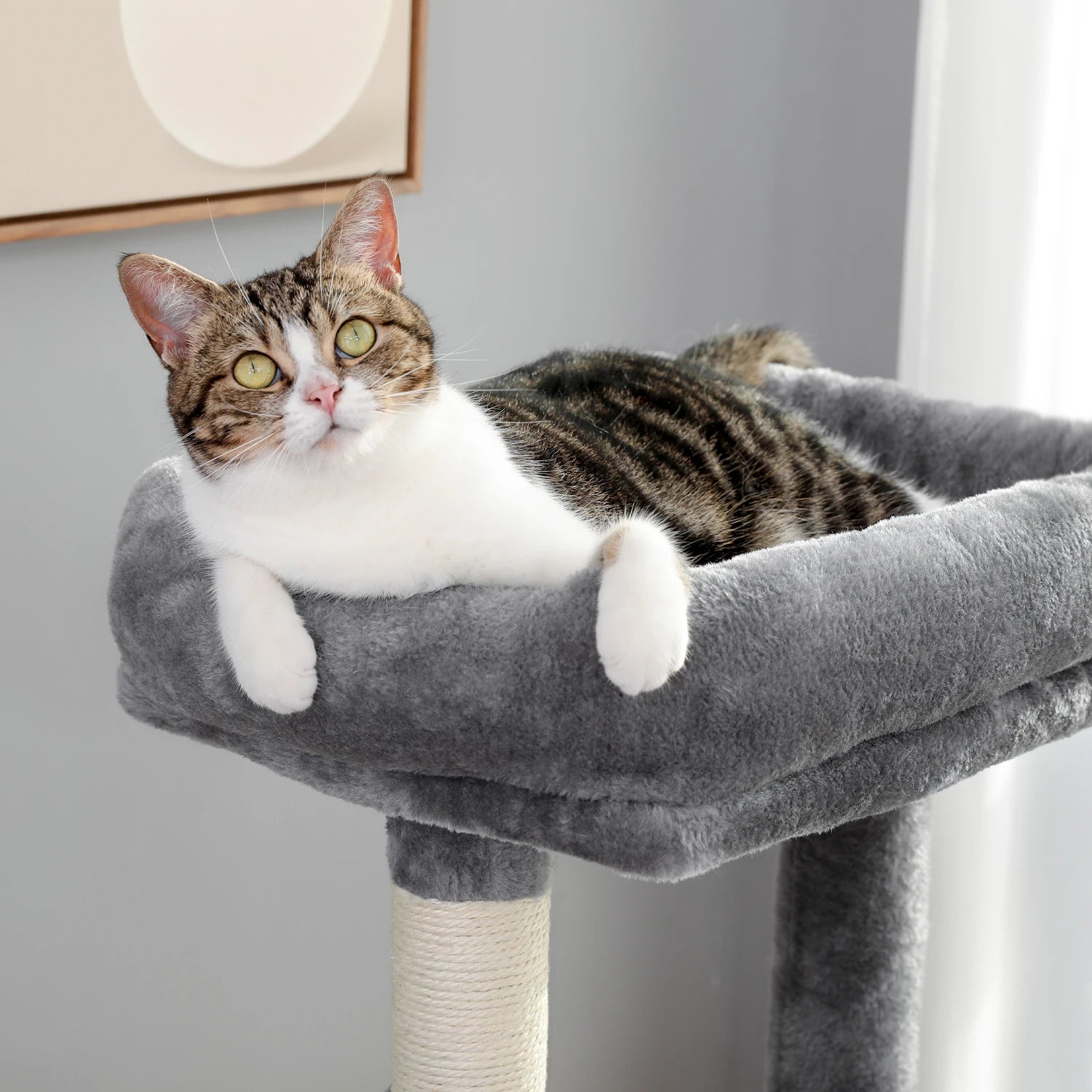 - Elegant Color Options: Available in Beige and Gray, this cat tree complements various home decors, adding a touch of sophistication and blending seamlessly with your interior.